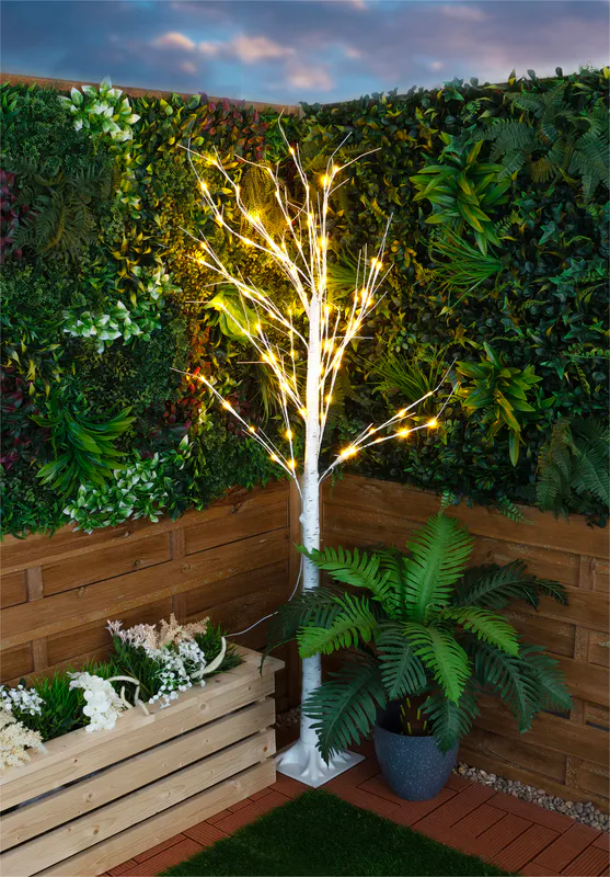 Elevate your Christmas decor with the Home & Garden LED Light Up Artificial Birch Tree. Whether placed outdoors or indoors, this stunning tree brings a touch of enchantment to your festive display. Standing at tall, this artificial birch tree is adorned with mesmerizing LED lights that emit a warm and inviting glow. The lights are delicately dispersed among the branches, creating a magical ambiance that will captivate both young and old. Supplied with a power supply that has a built in 6 hour On and 18 hour Off timer for convenient lighting.