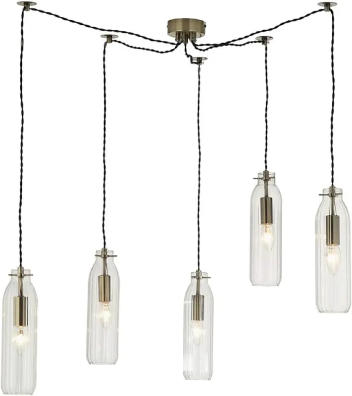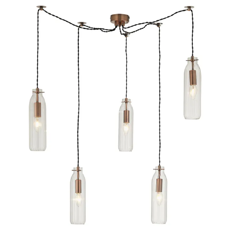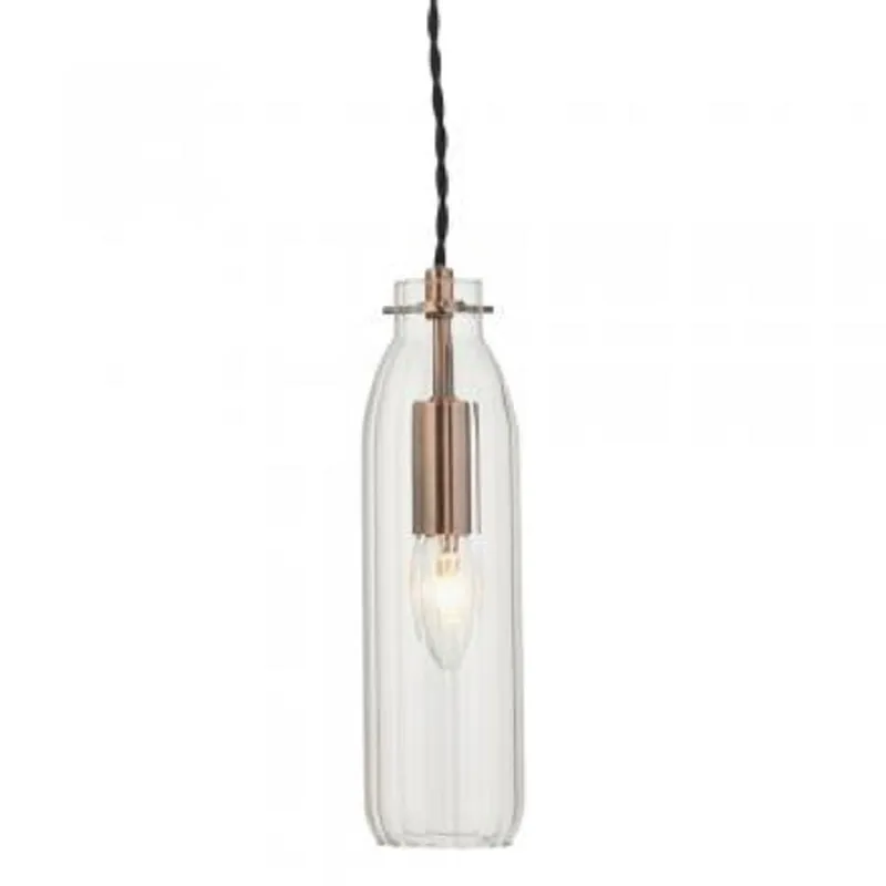 Here we have the Hyperian range of pendant lights. This chic modern and sleek design has a fluted style class tubular shade with twisted flex to a matching ceiling rose. The flex can be shortened from its 1300mm length as desired. The fittings require an E14 SES Lamp.
