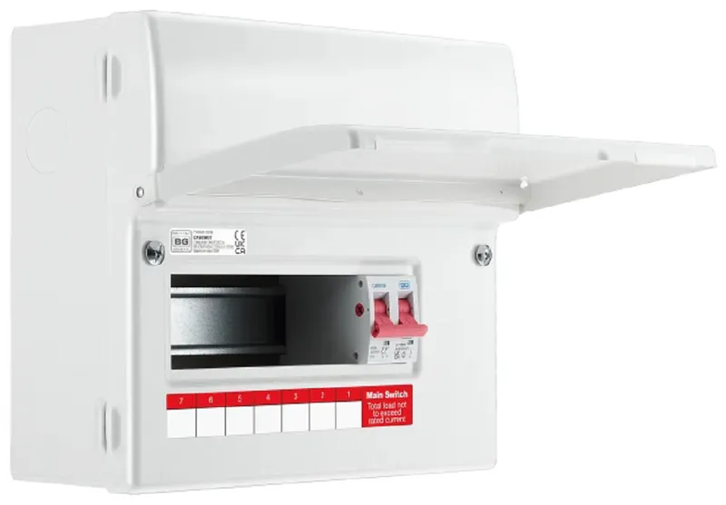 The BG CFUSW range are a metalclad consumer unit, available with 4, 7, 10, 14 , 17 or 20 free ways and supplied with 100A mains switch. It has a modern stylish design with a profile that matches BG wiring accessories.