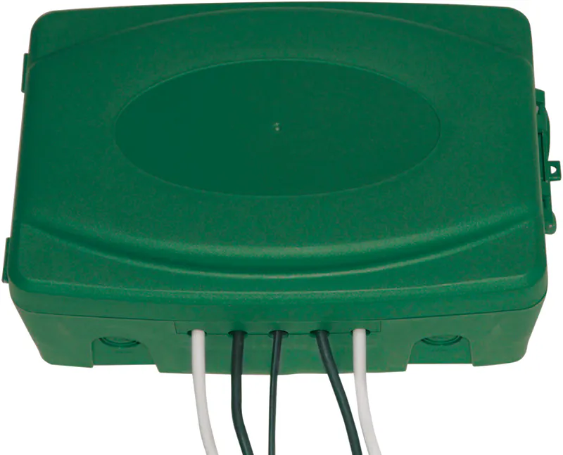 This IP54 rated electrical connection box offers a safe and simple way to house multiple outdoor connections, reducing the risk of dirt and dust build up. Ideal for use with extension reels, cords and up to 4-way extension leads, including transformers and timers. A great storage solution for reducing excess cabling, it can aid the reach of electrical equipment in the garden, reducing the risk of electrical hazard. It can be easily and securely closed using the simple hinged locking system. The box provides a simple yet effective lightweight and portable solution to be used with a range of electrical applications. Ideal for use with anything from hedge trimmers to lawn mowers to outdoor lighting. Available in 2 discreet colours to blend in with your outdoor space.