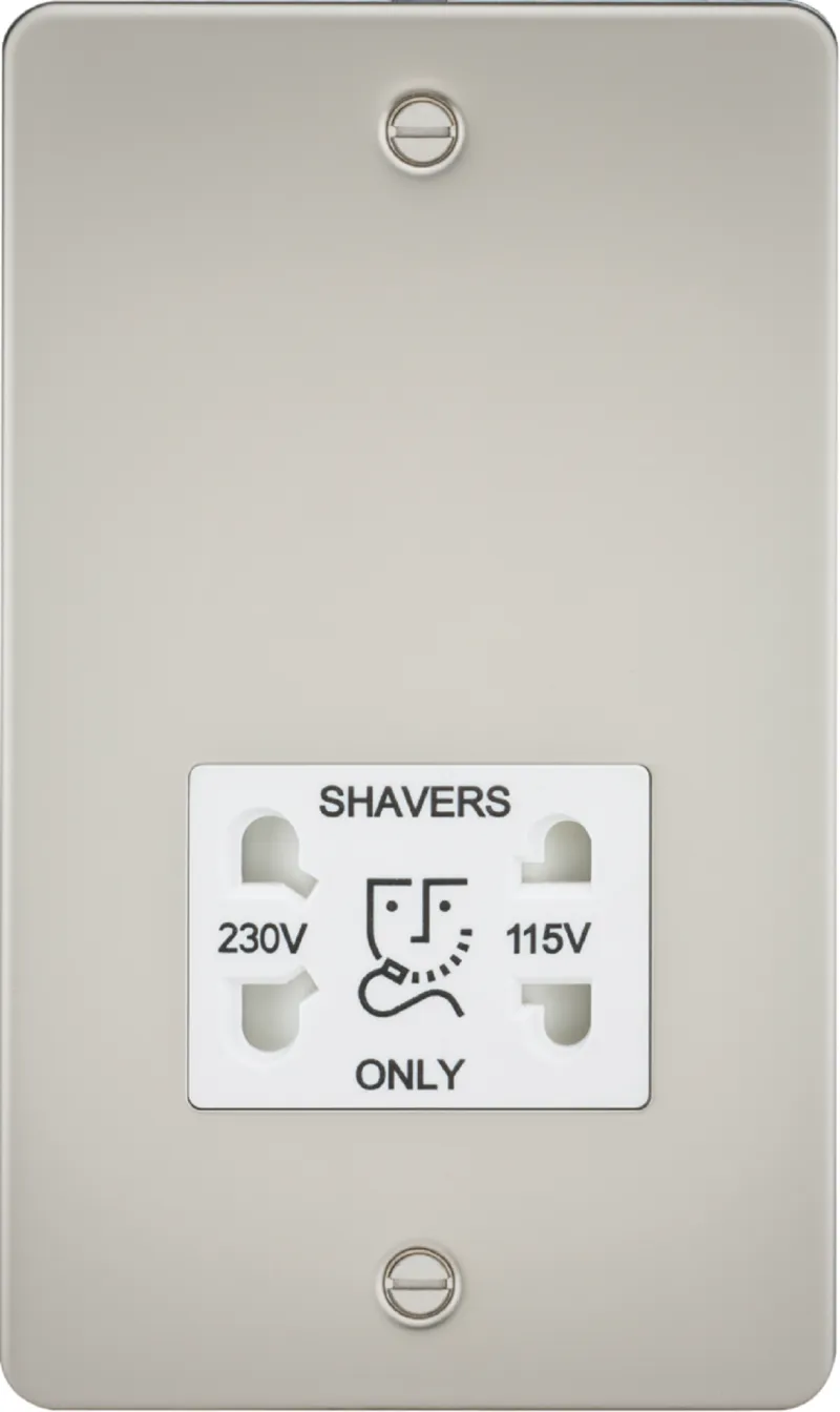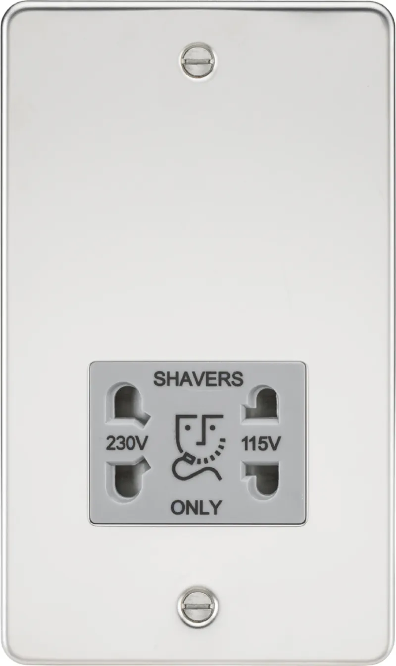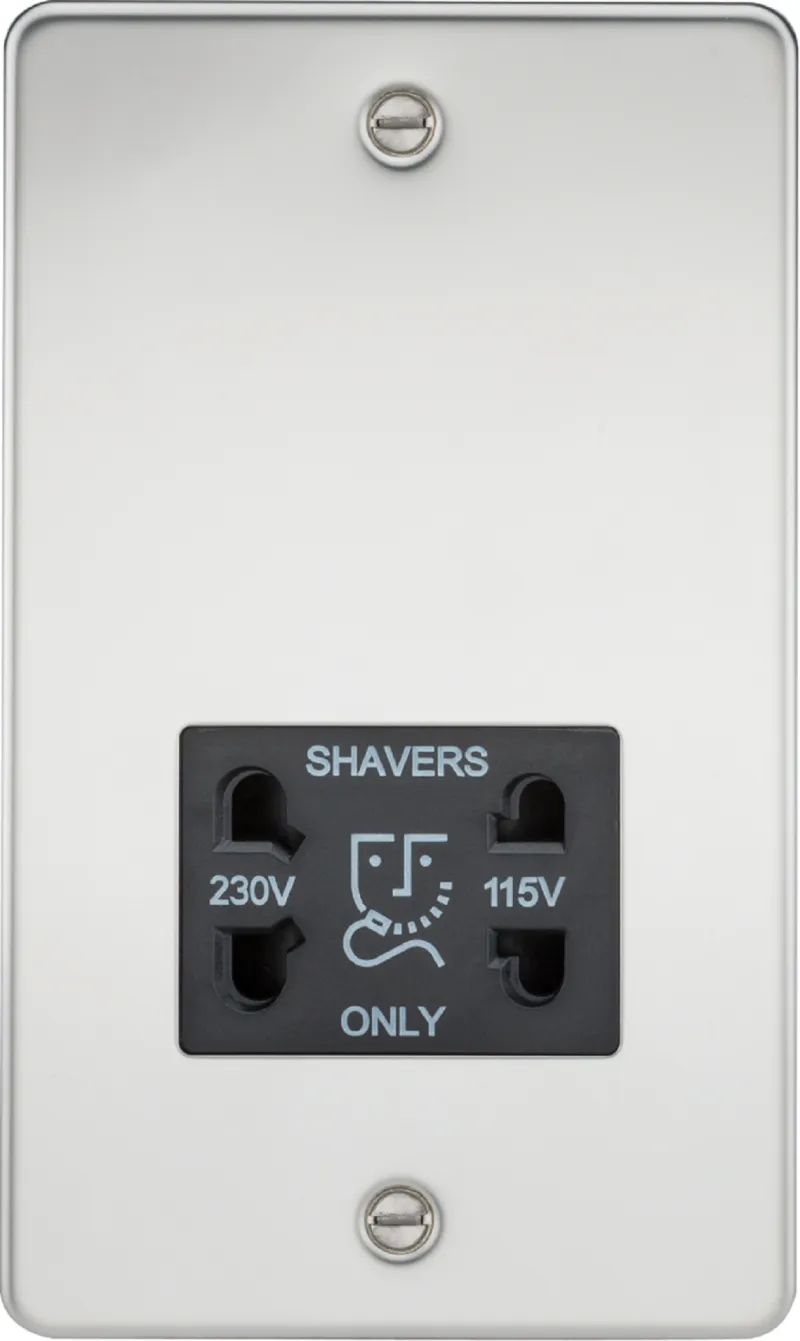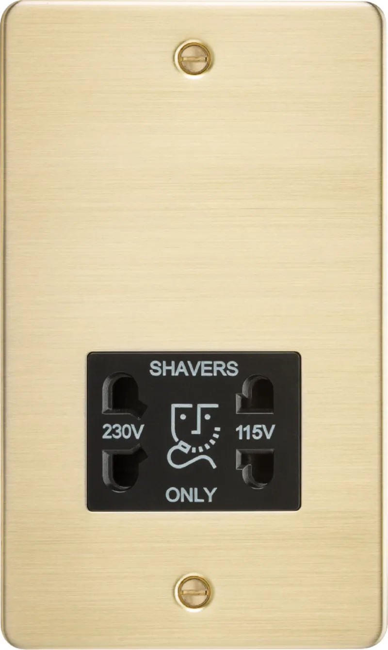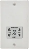 Perfect upgrade to any bathroom, dual voltage shaver socket, Flat Plate low profile metal design.115/230VAC 20VAIP41Dual Voltage Shaver SocketUltra low profile design with built in gasketCertified to EN 61558Minimum mounting box depth: 47mm
