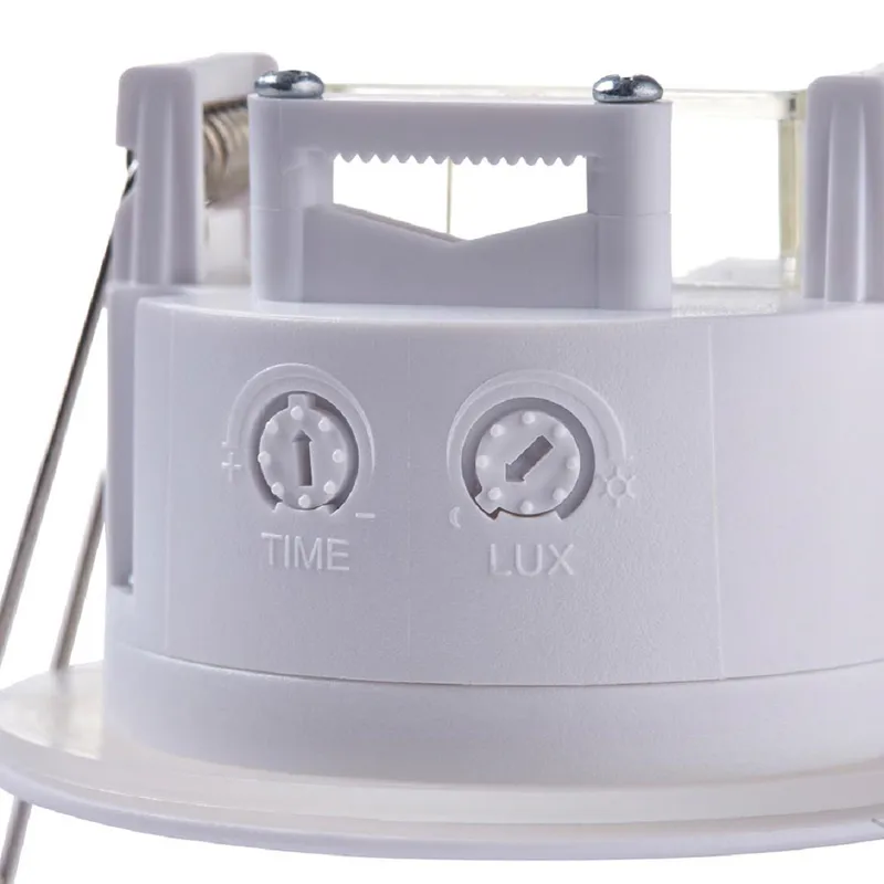 10 lux on, 2000 lux off, 360° detection angle, 8m maximum range with a 10 sec to 7min timer function, install height :2-2.4m
