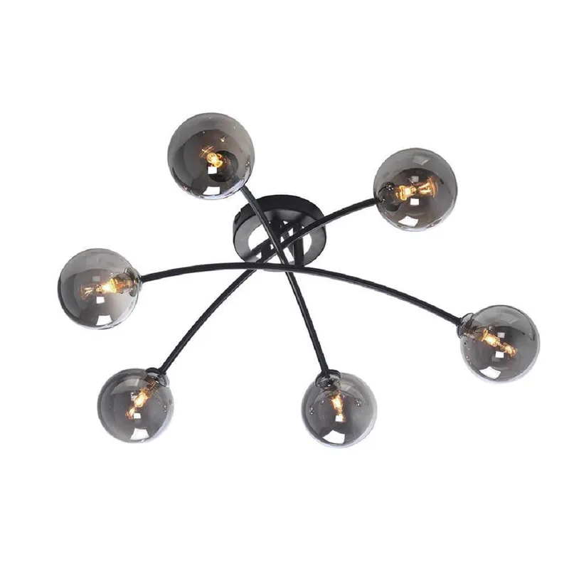 The Marne family of lights are a stunning black finish with a smoked glass shade. Available as either a 6 light pendant, 3 light ceiling fitting, wall, table and floor lights.
