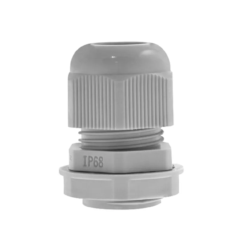 Nylon Gland complete with locknut. Made from Polyamide 6 with an IPx8 ingress protection. Available in sizes from 12mm up to 63mm in black, grey, white and red. 20mm versions are also available in a large allowing up to 18mm cable diameters to be fitted.