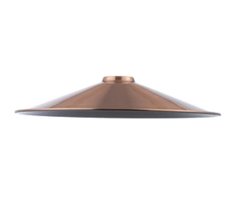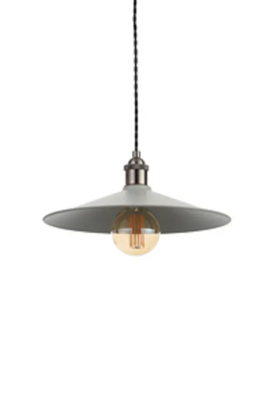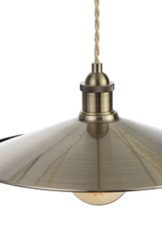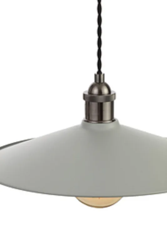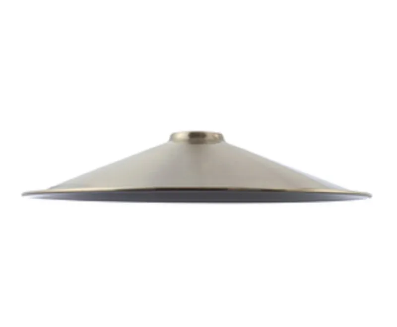 Large flat dinner shade, available in Antique Brass, Polished Nickel, Antique Copper and Matt Grey. Fits E27 cable sets and comes complete with a B22 pendant adaptor.