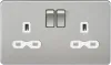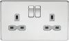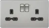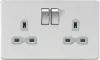 Screwless Double Socket - Brushed Chrome with Grey Insert