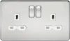Screwless 13A 2G DP switched socket - Brushed chrome with grey insert