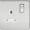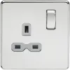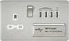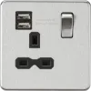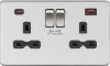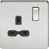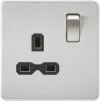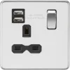 Screwless 13A 2G DP switched socket - brushed chrome with black insert