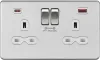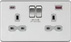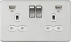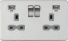 Screwless Double Socket - Brushed Chrome with Grey Insert