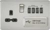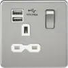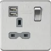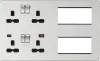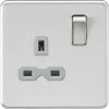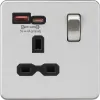 Screwless 13A 2G DP switched socket - Brushed chrome with grey insert
