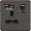 Screwless 13A 1G DP switched socket - Smoked Bronze