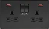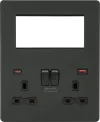 Screwless 13A 2G DP switched socket - black nickel with black insert